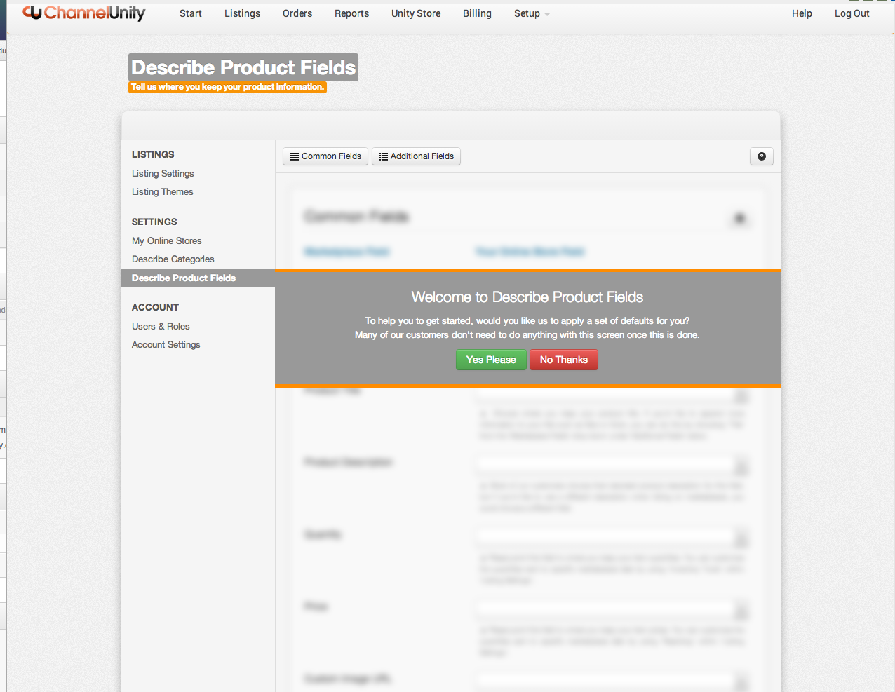 In ChannelUnity click on Setup > Describe Product Fields. If this is the first time you’ve navigated to this screen, it will show as below.