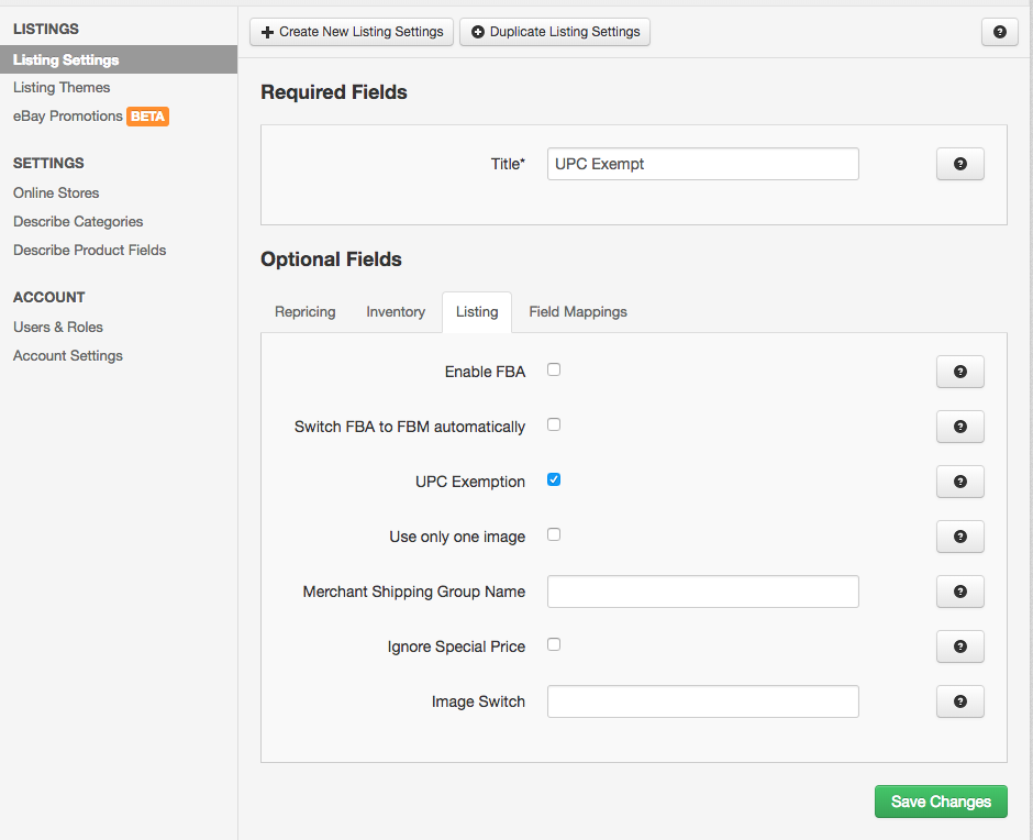 Once you’ve selected the desired settings, make sure you Save Changes and apply the Listing Setting to the relevant products. Then reupload any products that you apply the Listing Setting to.