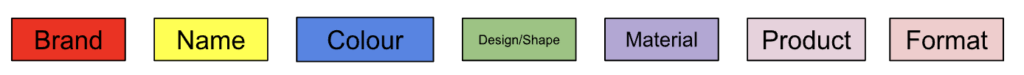 Naming your product should follow the format of Brand + Name + Colour + Design/Shape + Material + Product + (Format) as per B&Q’s suggested best practice.
